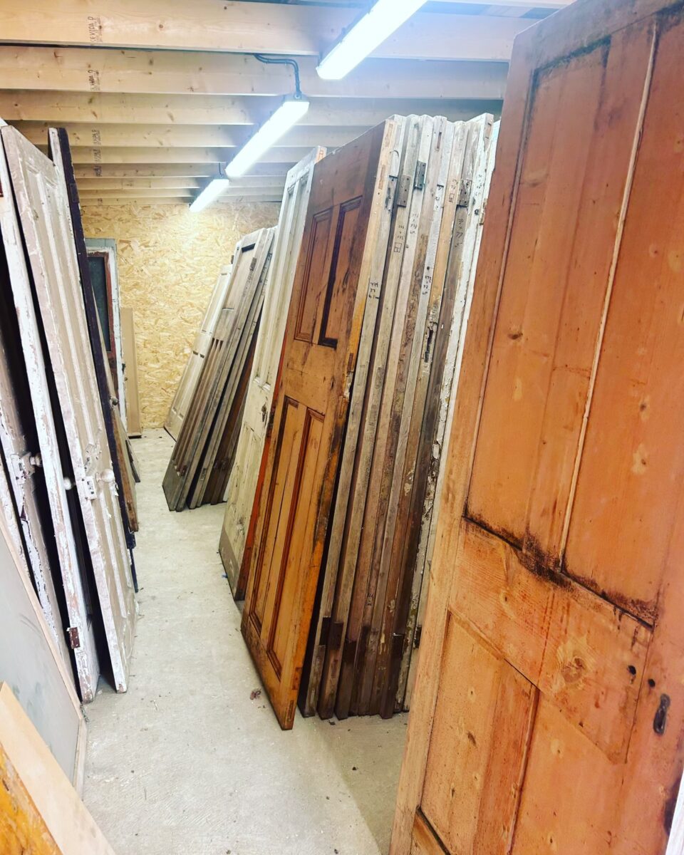 Eight wooden reclaimed doors in good condition.